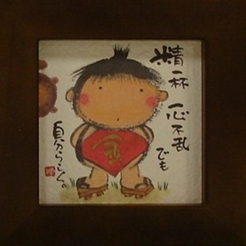 取寄せ品 御木幽石 精一杯 一心不乱 ブラウン ほほえみ-76 ミニフレーム付きポスター メッセージアート