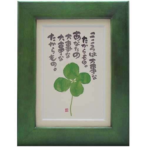 取寄せ品 御木幽石 こころは大事なたからもの グリーン ポストカード額装 フレーム付きPC メッセージアート