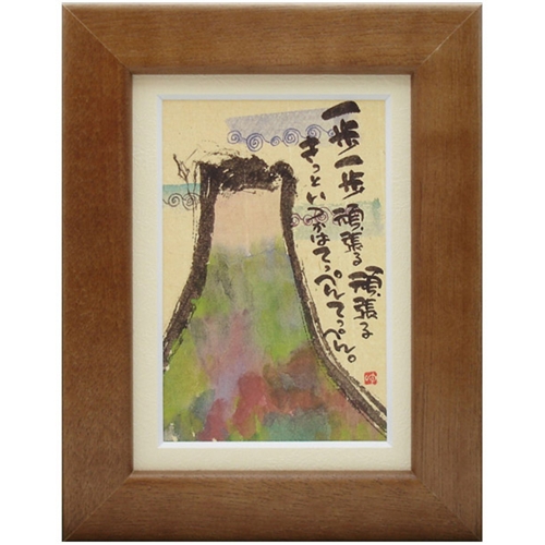 取寄せ品 御木幽石 きっといつかはてっぺん ブラウン ポストカード額装 フレーム付きPC メッセージアート