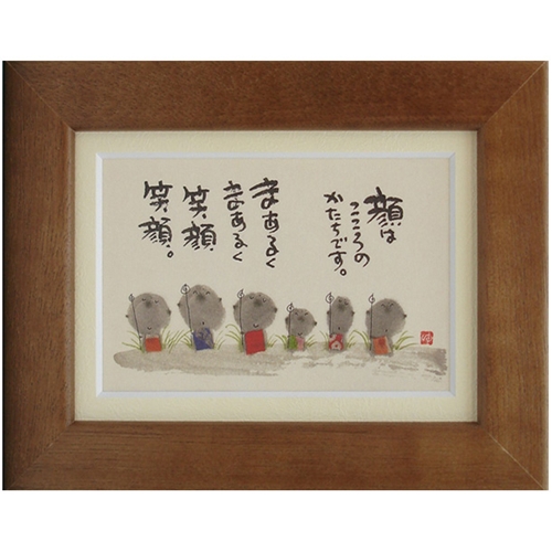 「取寄せ品 御木幽石 顔はこころのかたちです ブラウン ポストカード額装 フレーム付きPC メッセージアート」