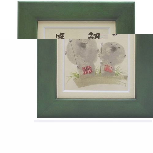 「取寄せ品 御木幽石 福は笑顔が大好きだから… グリーン ポストカード額装 フレーム付きPC メッセージアート」