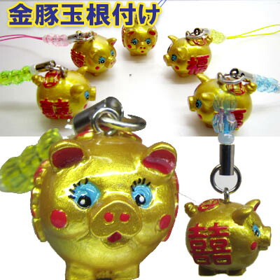 玉根付け金豚ストラップ (ネコポス便可)|開運,根付け,キーホルダー,スマホ,チャーム,お土産,ギフト,誕生日,プレゼント,金ブタ,金ぶた
