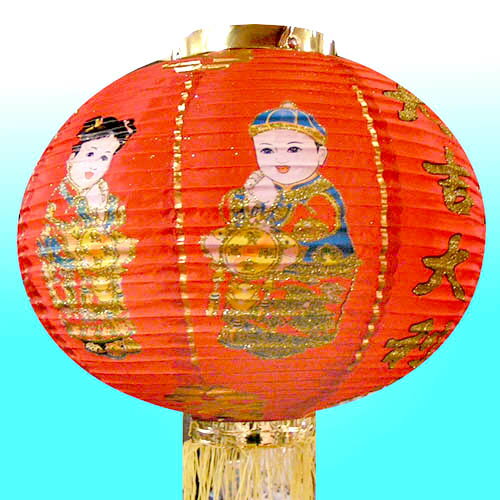 童絵入り ちょうちん 14インチ(2個セット 38cm)赤 【送料無料】(沖縄別途1000円) ||中国,伝統,宮灯,宮燈,プラデコ,中華街,お土産,提灯,紅,赤,折り畳み,店舗,装飾,デコレーション)