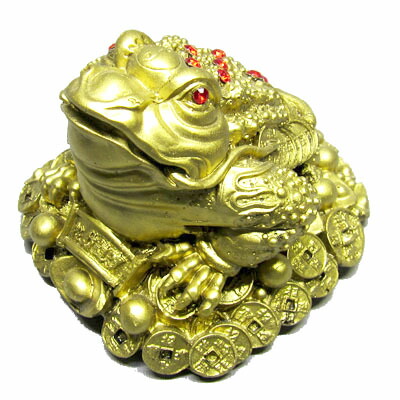 3本足の蛙(カエル)は銭蛙とも言われ、前後左右に有る財を全てかき集めるため足が3本しかありません。