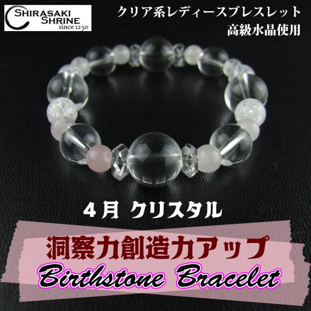 4月の誕生石【水晶】パワーストーンブレスレット 神社でお清め・お祓い済み 内周15cm/高級桐箱付き/レディース/守護石/お守り/祈願済み