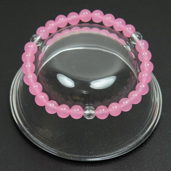 【メール便対応】パワーストーン 6mm玉 ピンクストーン*水晶3ポイント ブレスレット クリスタルクォーツ 数珠 天然石 6ミリ 翡翠 ┃