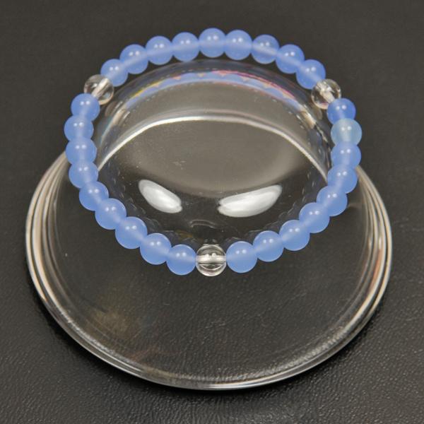 【メール便対応】パワーストーン 6mm玉 ロイヤルブルーストーン*水晶3ポイント ブレスレット クリスタルクォーツ 数珠 6ミリ 翡翠 ┃