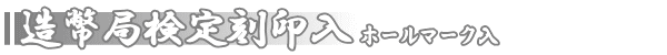 | 財務省造幣局が貴金属製品の製造業者又は販売業者からの依頼に応じて、貴金属製品の品位試験を行い、この試験に合格したものには、証明記号を打刻してその品位を証明しています。この証明記号を通称「ホール・マーク」といいます。 | ||||||||||||