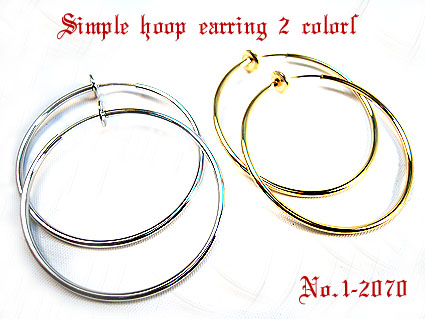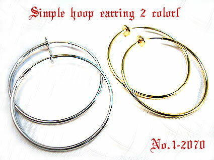 バネタイプなので耳たぶに挟むだけのイヤリングです。大きさは直径4cmと5cmの2サイズ、カラーはシルバー、ゴールドの2色から選んでください。