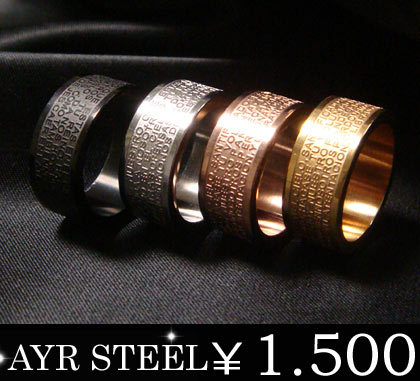 | AYR STEEL | 最重要コンセプトにはコストパフォーマンスを上げ、ハード・ユニセックスをテーマに今までにないステンレスアクセサリー構築していきます。まずは価格にご注目下さい! |