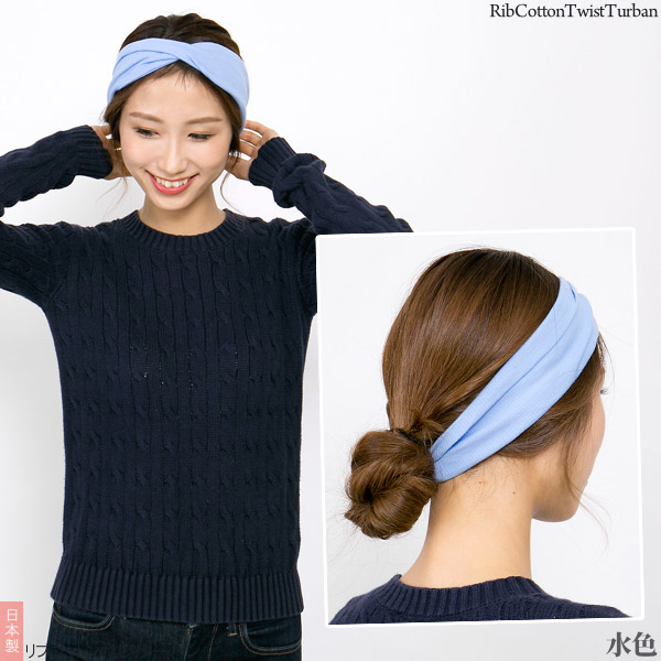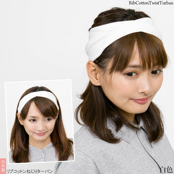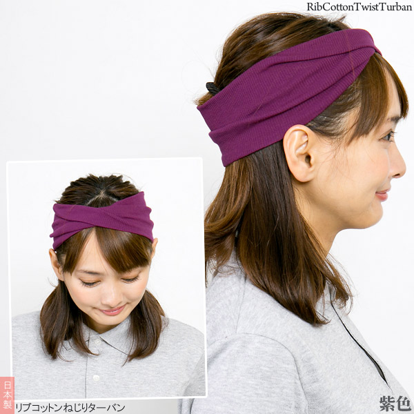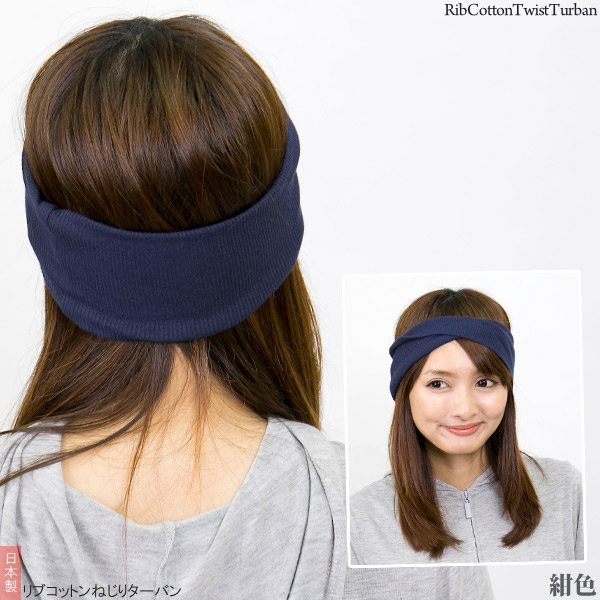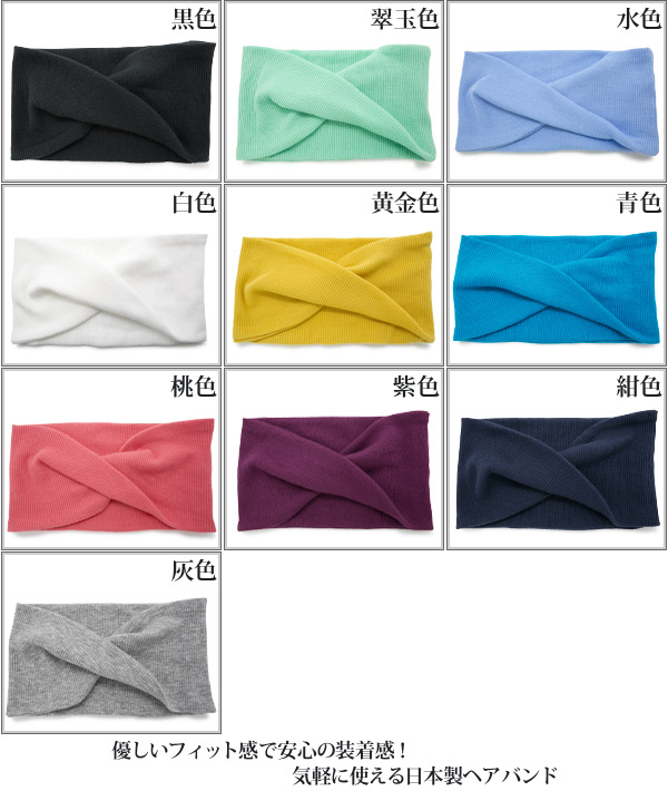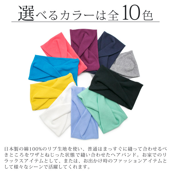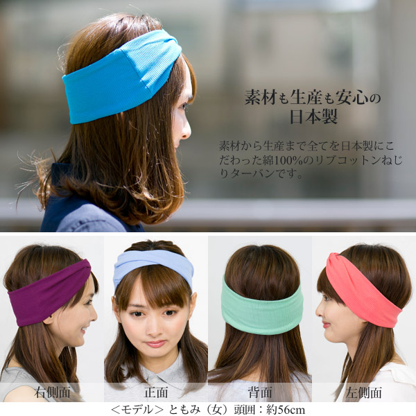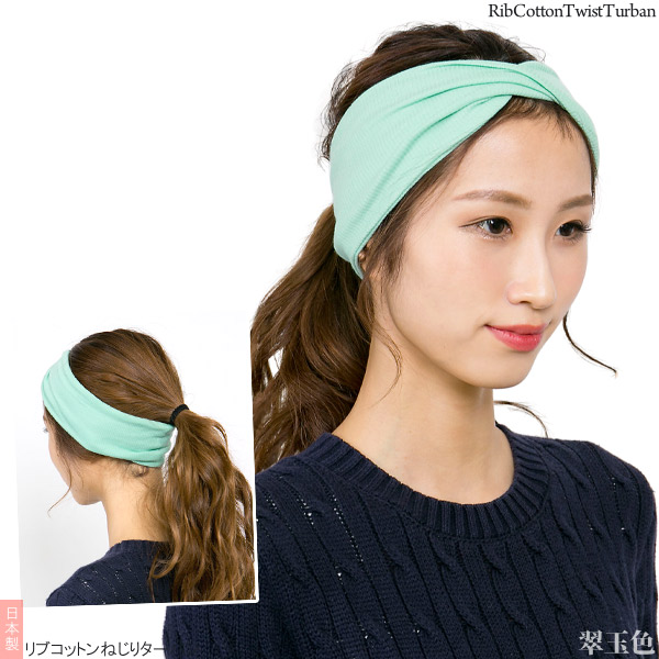 ヘアバンド レディース [メール便可] 綿100 スポーツ / リブ コットンねじりターバン 日本製