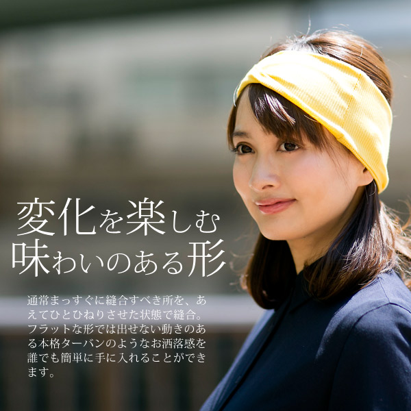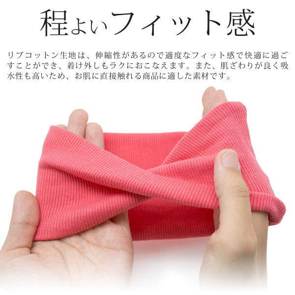 日本製の綿100%のリブ生地を使い、普通はまっすぐに縫って合わせるべきところをワザとねじった状態で縫い合わせたヘアバンドがZactionオリジナルで完成しました。リブコットン生地は、伸縮性があるので適度なフィット感で快適に過ごすことができ、着け外しもラクにおこなえます。また、肌ざわりが良く吸水性も高いため、お肌に直接触れる商品に適した素材です。以前は、24番手の生地を使用していましたが、40番手の生地に変更することにより細やかで生地厚が薄く柔らかくなりました。まっすぐなものと違って少し変化のある見た目になりますので、着用するだけでオシャレな印象に変身!