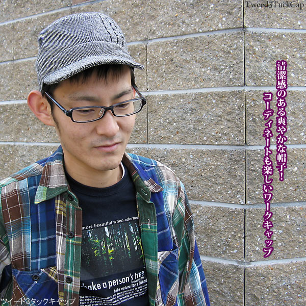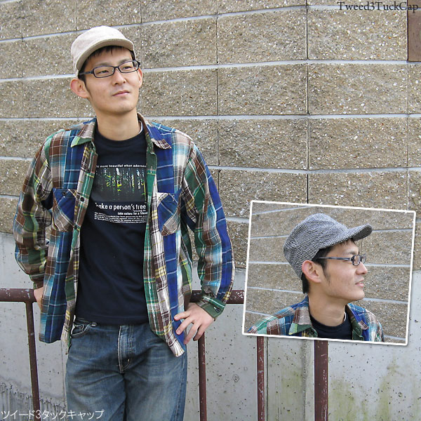 帽子 CAP [メール便可] メンズ レディース 春 秋 冬 WORK シンプル ウール 男女兼用 / ツイード3タックキャップ