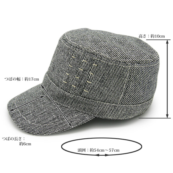 | サイズ | フリーサイズ (頭囲:約54〜57cm、高さ:約10cm、つば:長さ約6cm・幅約17cm) |