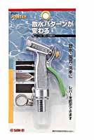 特長:レバーの握り方一つで水の放射角度が調節でき、直射・噴霧・止水ができる節水タイプ適合ホース:内径15mm