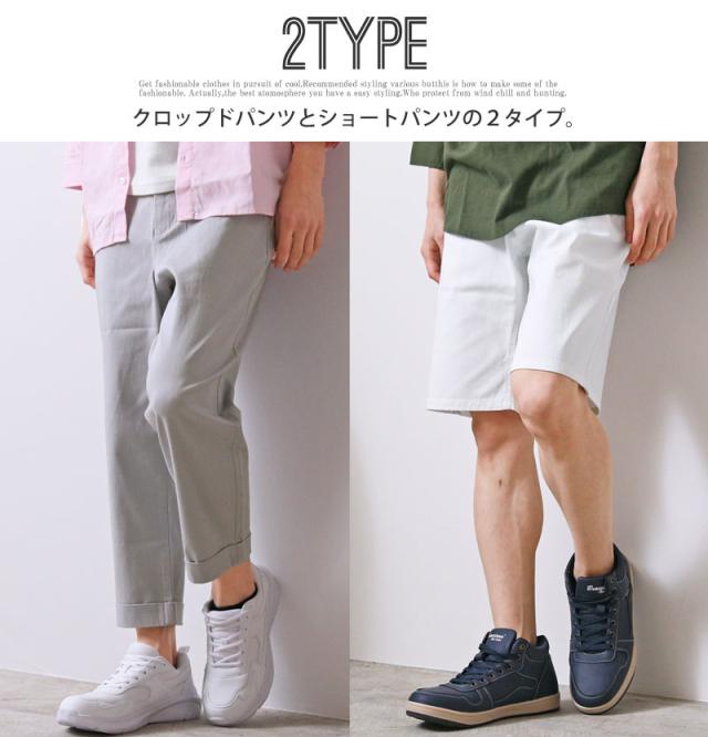 S~XXL 新作 春 夏 チノパン メンズ クロップド 半端丈 ショート丈 ショートパンツ 無地 ストレッチ 2025リニューアルVer 選べる股下2タイプ 送料無料 クロップドパンツ ハーフパンツ ゆうパケ