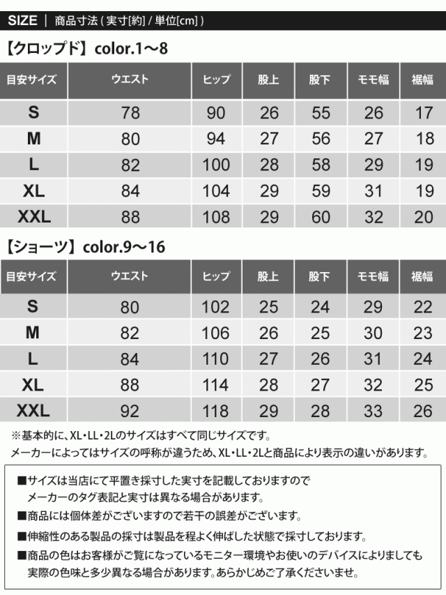 クロップドパンツ(7分丈)とショートパンツ(5分丈)の2タイプ。