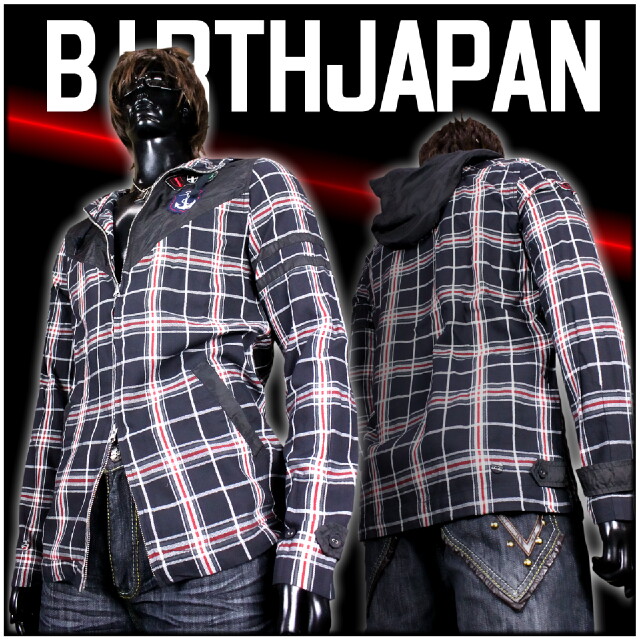 28黒 アメカジお兄系定番ワッペン付チェック柄切り替えジャケット パーカー 服 梅しゃん メンナク ナイトサーフ サーフAA06 悪党の店 バースジャパン BIRTHJAPAN
