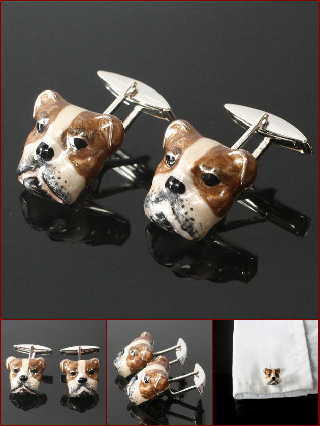 愛らしいブルドッグモチーフのカフスボタン。