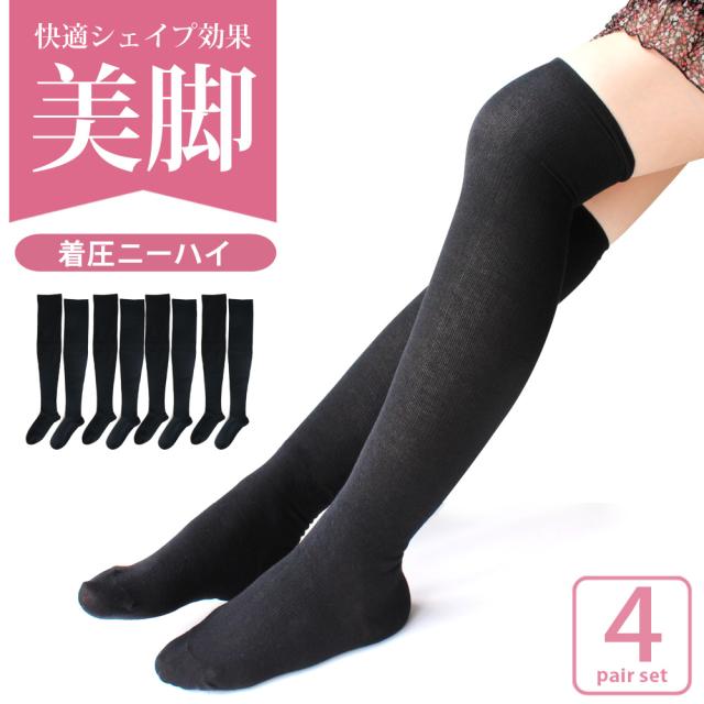 着圧 ニーハイ ソックス 4足セット 靴下 レディース オーバーニー 快適シェイプ 引き締め / 送料無料