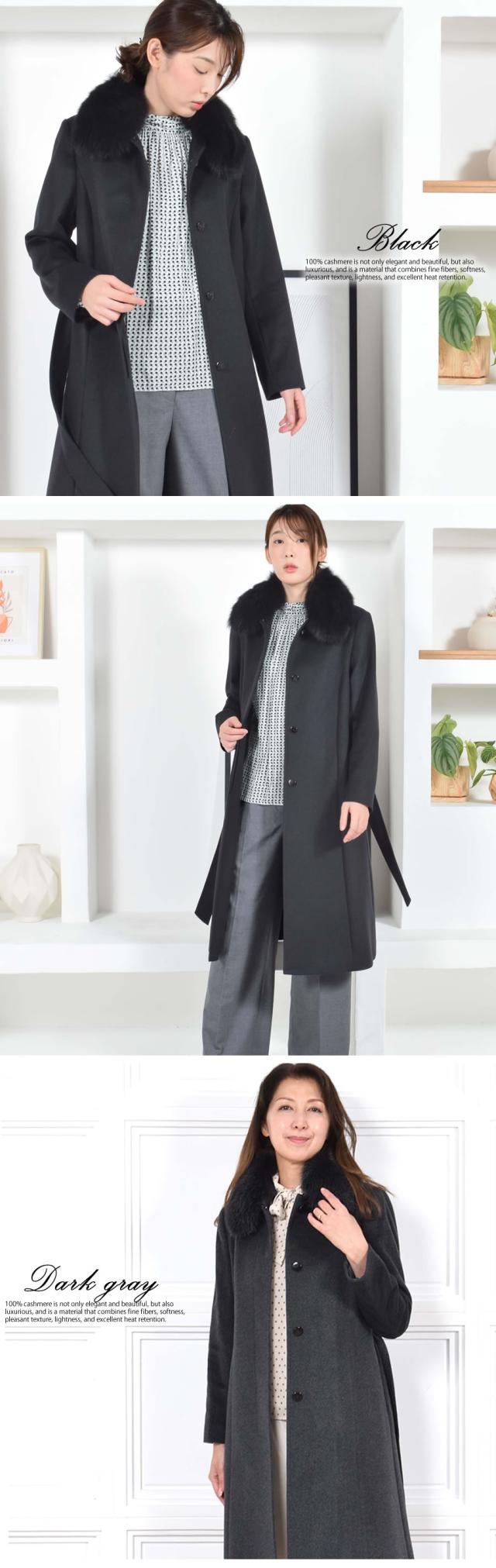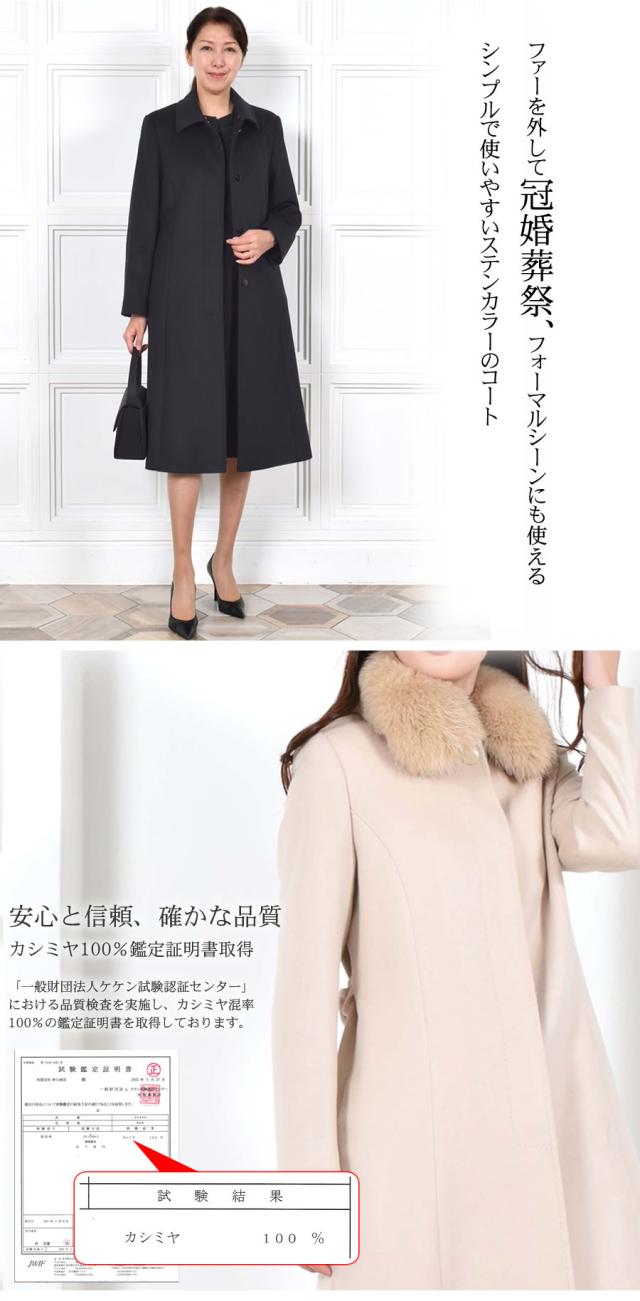 カシミヤコート カシミヤ100%コートフォックストリム レディース 婦人用 カシミアコート ブラック フォーマル レディス 女性用 冠婚葬祭 冬 ミセス 30代 40代 50代 60代 (c9602)