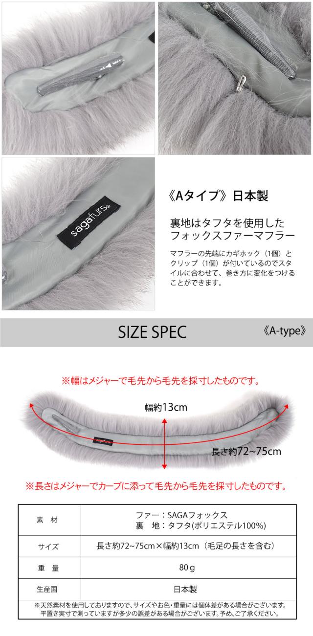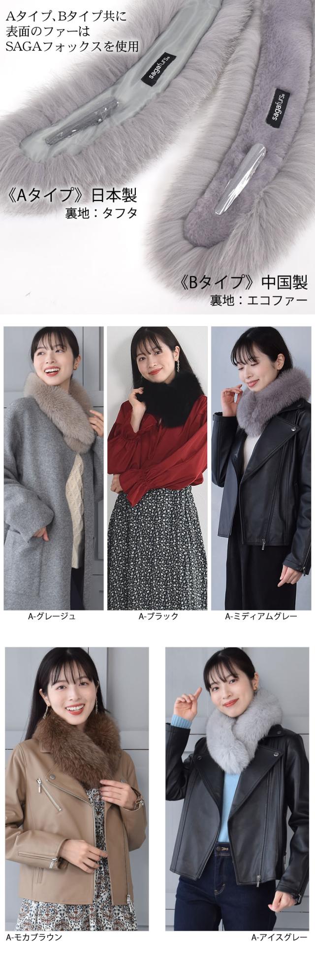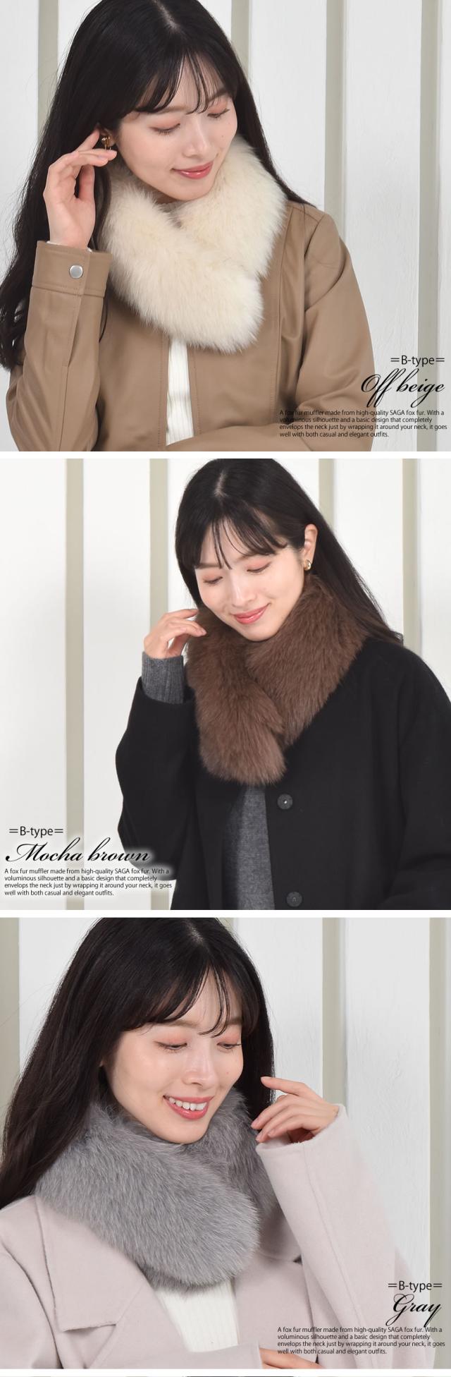 安心と信頼・確かな品質、ファーの最高級品質を誇るブランド「SAGA FUR」をたっぷり使用したファーマフラー。柔らかな手触りとリッチな艶感が自慢のファーマフラーは、カジュアルからドレッシースタイルまでふんわり巻くだけでニュアンスが生まれ、着こなしにリッチさをプラス。デコルテに添うラウンド型で、何気なく巻くだけで大人フェミニンなスタイルに。Aタイプは日本製で裏地部分にタフタを使用し保温性抜群。Bタイプはふわふわのエコファーを裏地部分に使用することで巻いた時のヒヤッと感がなく、すぐに暖か。豊富なカラーバリエーションで秋冬ファッションに似合うアイテムです。