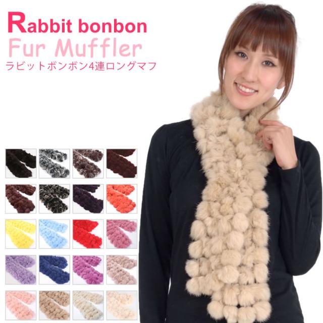 マフラー レディース ラビットボンボン4連ロングマフラー(RF9184)(メール便送料無料)(P)