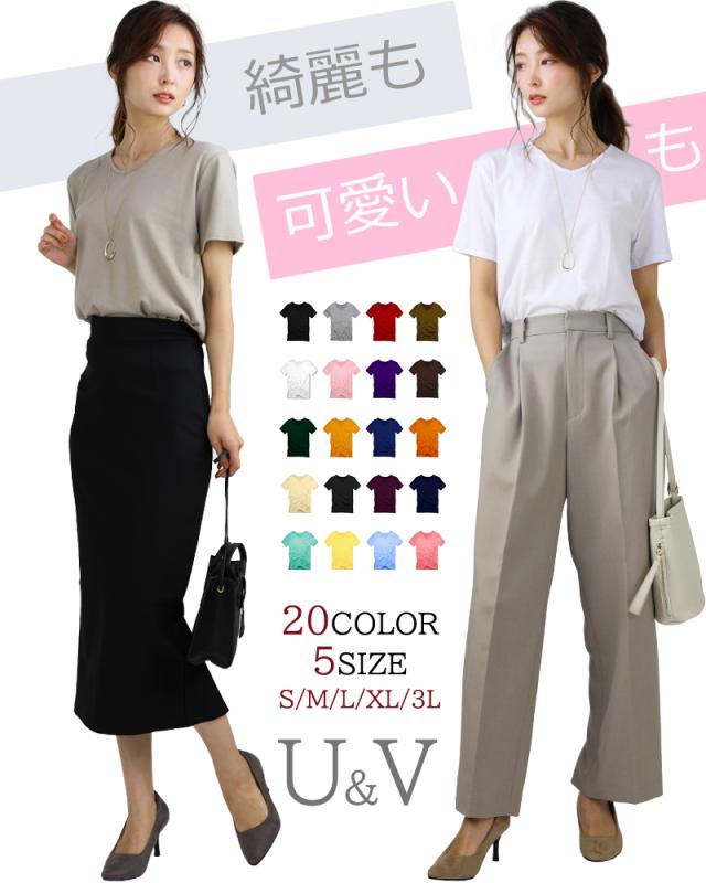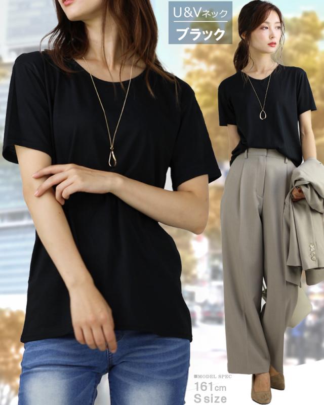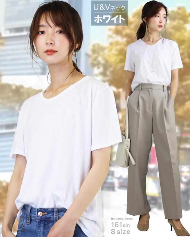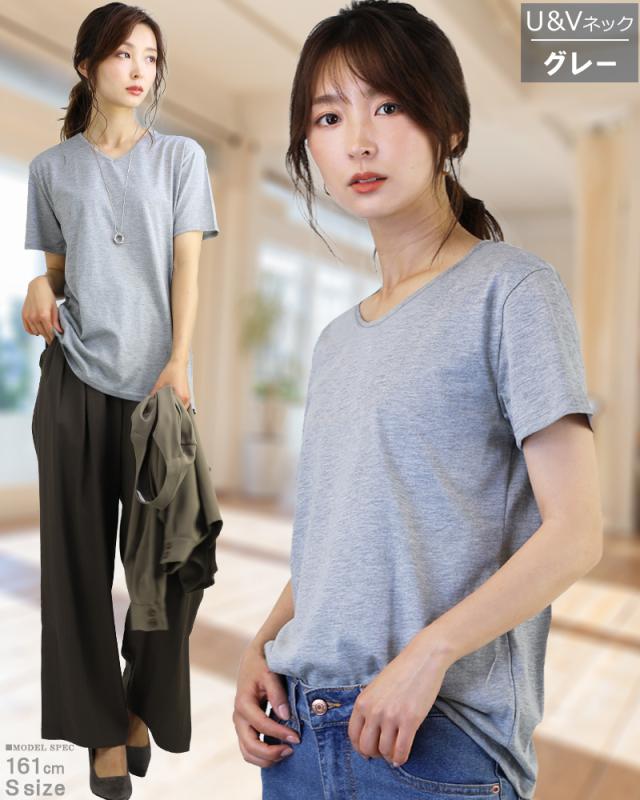 tシャツ レディース 半袖 カジュアル vネック uネック おしゃれ シンプル 無地 s m l xl 3l サイズ トップス ファッション インナー 女性用 細見え