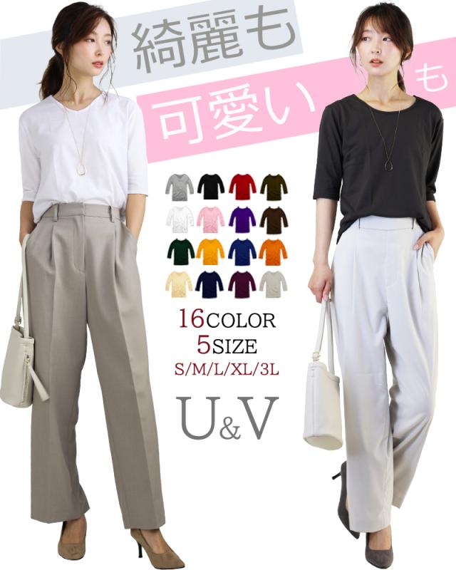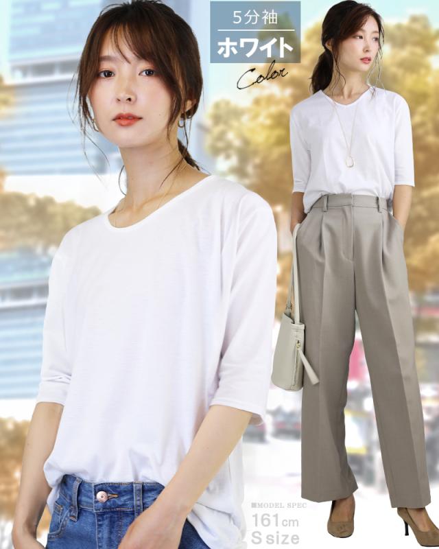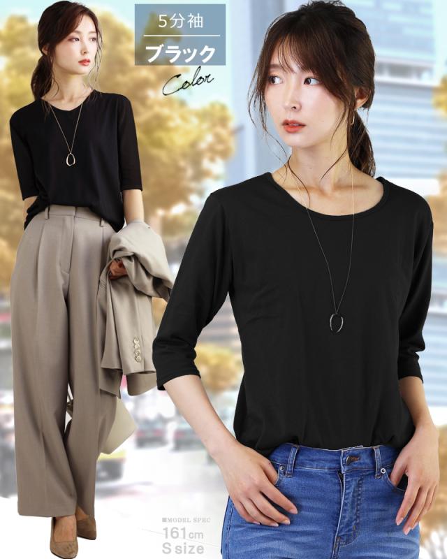 tシャツ レディース 5分袖 五分袖 カジュアル vネック uネック おしゃれ シンプル 無地 ブラック ホワイト s m l xl 3l サイズ トップス ファッション 女性用 肌着 重ね着 インナー 細見え f21-f303