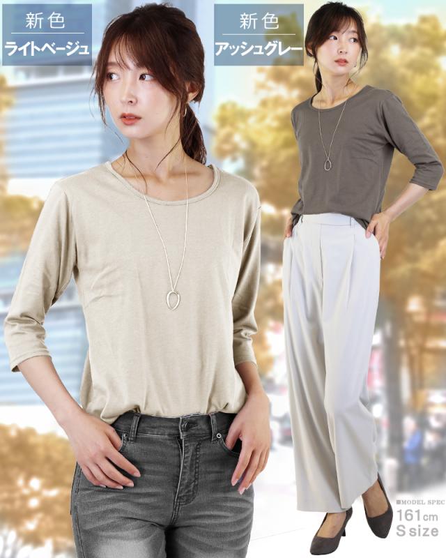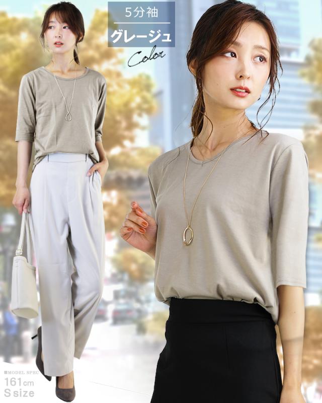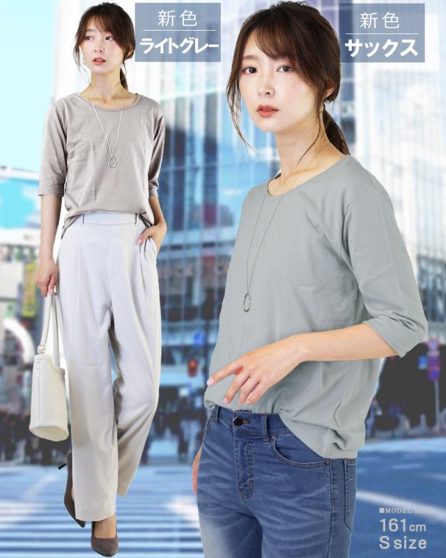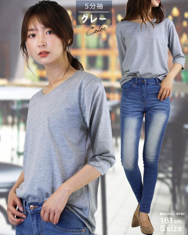 - 五分袖のTシャツが欲しかったので購入しました。二の腕も隠せて、お買い得でした。
