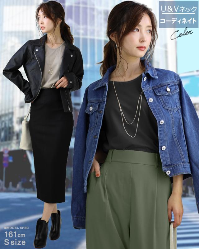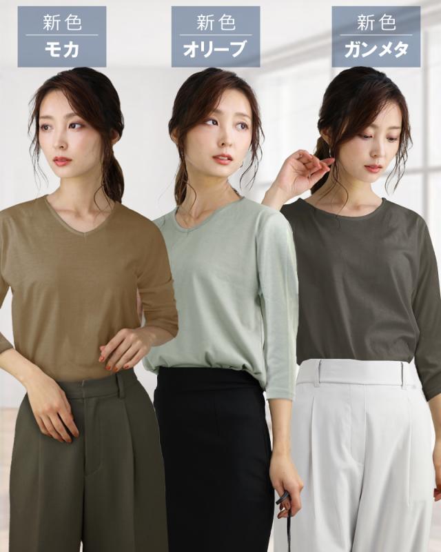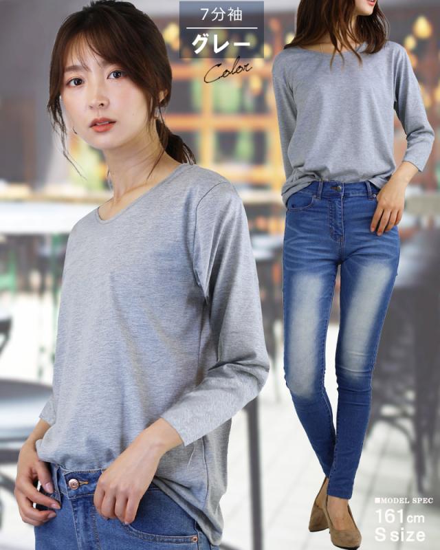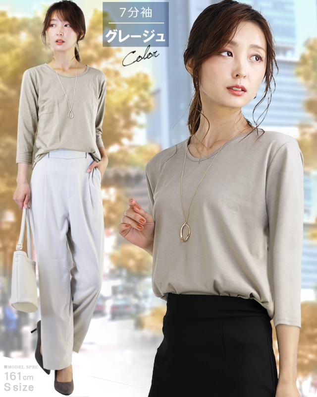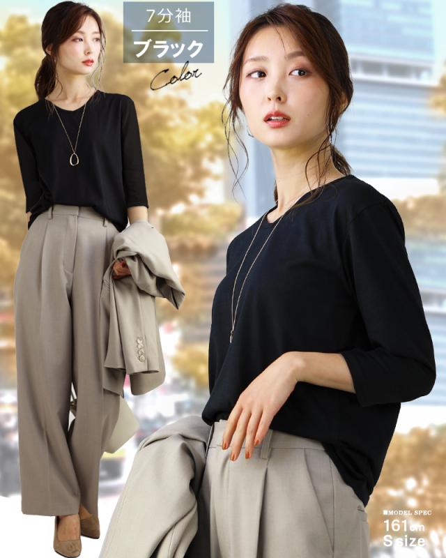tシャツ レディース 7分袖 七分袖 カジュアル vネック uネック おしゃれ シンプル 無地 ブラック ホワイト s m l xl 3l サイズ トップス ファッション 女性用 肌着 重ね着 インナー 細見え f29-f323