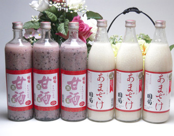 6本セット 篠崎 国菊 ノンアルコール甘酒(あまざけ)セット(あまさけ3本・黒米入り3本) 900ml×6本