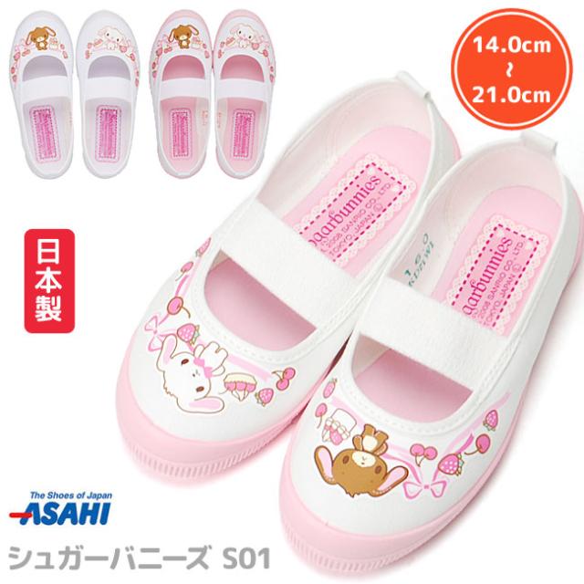 アサヒシューズ 上履き 上靴 S01 KD3779 日本製 2E ホワイト シュガーバニーズ 歩きやすい キッズ 子供 学校 バレーシューズ 上ばき 上ぐつ 靴
