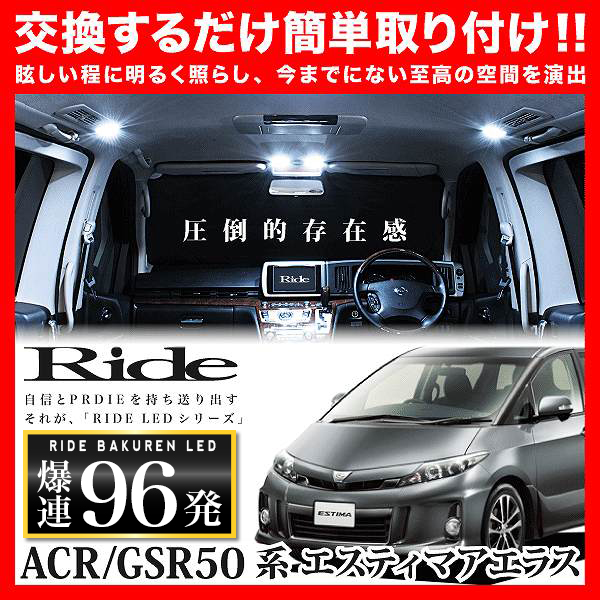 エスティマアエラス RIDE LEDルームランプ 96発 7点 ACR50W ACR55W GSR50W GSR55W [H18.1-H26.9]