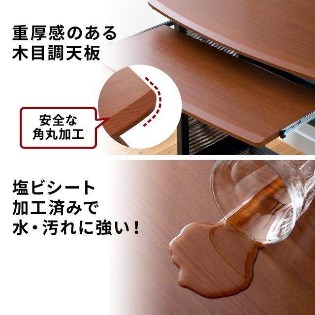 ●キーボードテーブルはスライド式で収納することができます。精密レール付きで動きが滑らかです。
