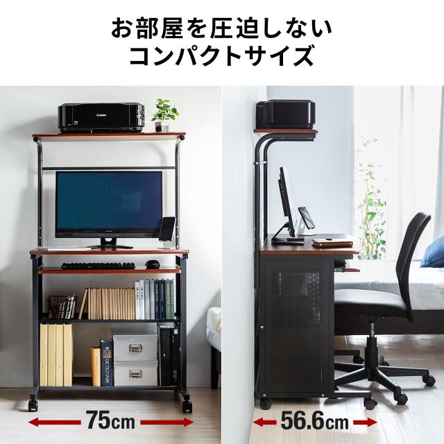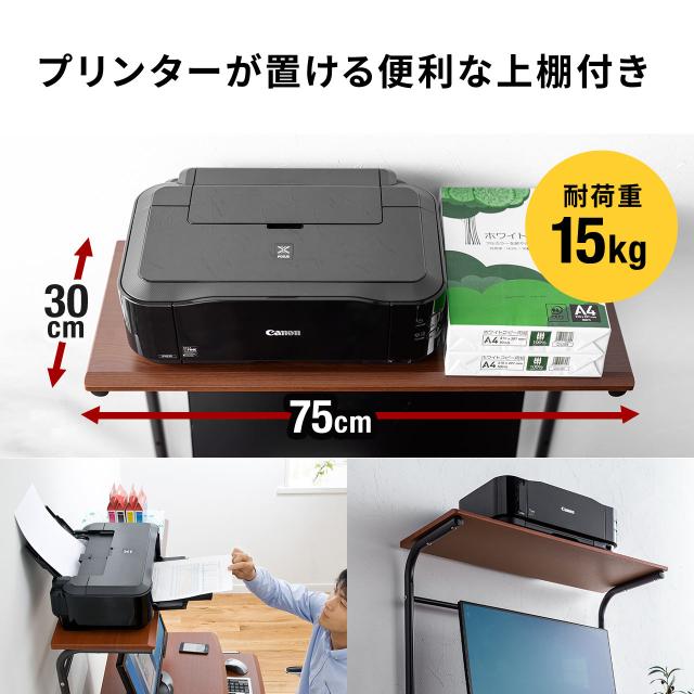 パソコンラック 幅75cm キーボードスライダー 上棚 キャスターつき ダークオーク 木目調 パソコンデスク [100-002]