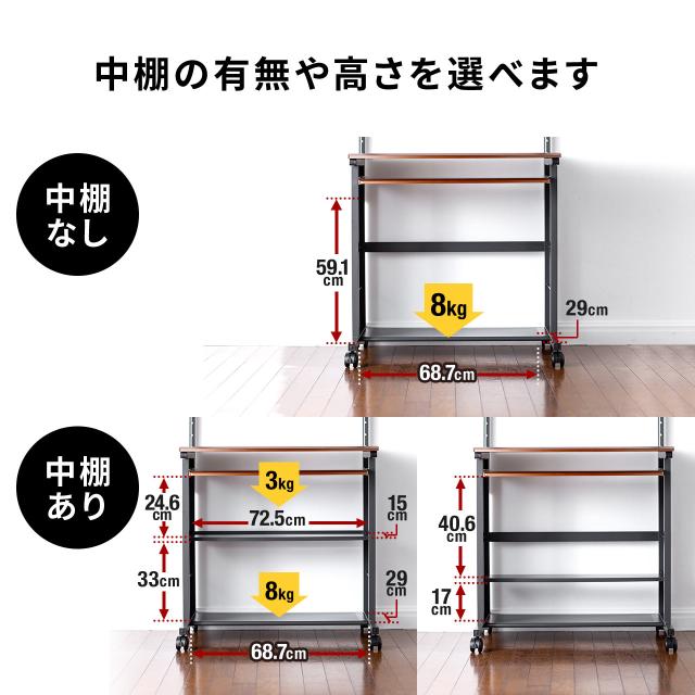 ●ミニタワーは下棚収納も可能です。さらに取り外しのできる中棚がついており収納に便利です。