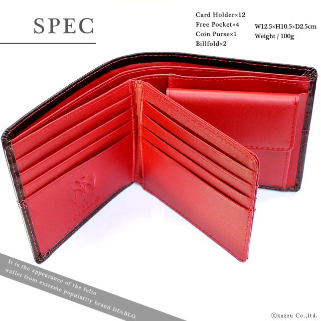 財布 メンズ 短財布 二つ折り 二つ折り財布 馬革×牛革 大容量 14ポケット DIABLO ディアブロ【KA-903】 ブランド 人気
