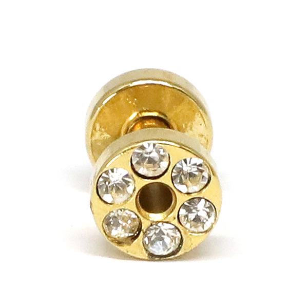 【メール便対応】フレッシュトンネル ゴールド ラインストーン付 10G(2.5mm) GOLD カラーコーティング加工 ボディーピアス ゴージャス ロブ アイレット イヤーレット 10ゲージ┃