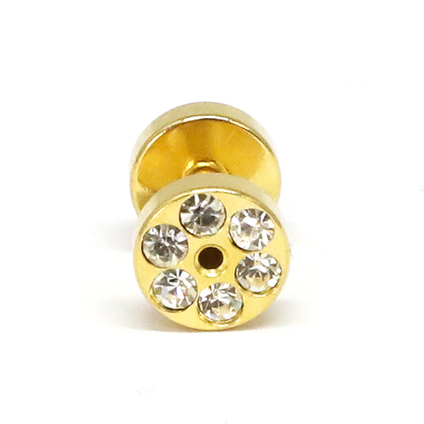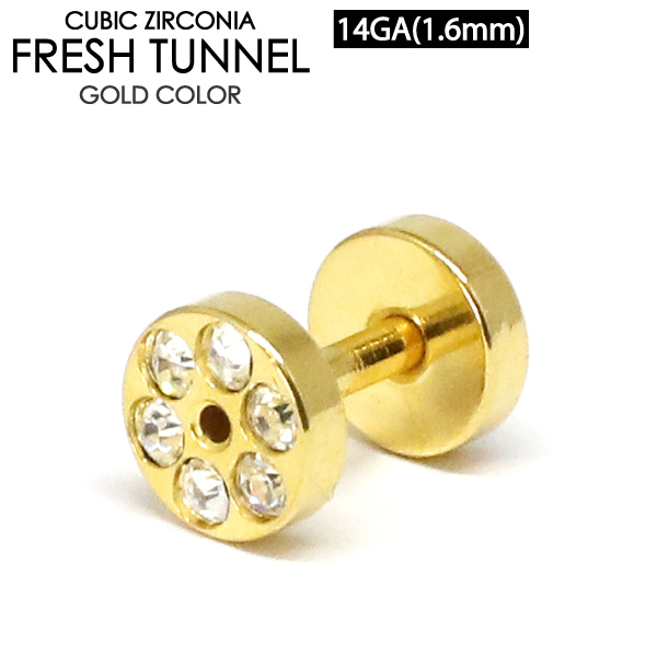 【メール便対応】フレッシュトンネル ゴールド ラインストーン付 14G(1.6mm) GOLD カラーコーティング加工 ボディーピアス ゴージャス ロブ アイレット イヤーレット 14ゲージ┃