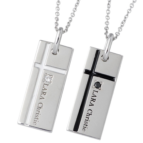 ララクリスティー LARA Christie シルバー ペア ネックレス ノーブル クロス キュービック プレート LA-P3051-P 送料無料