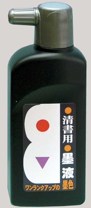 美しいのが特徴特に半紙向きに開発された清書用の液体墨で、書きやすさと墨色の黒さを求めました。