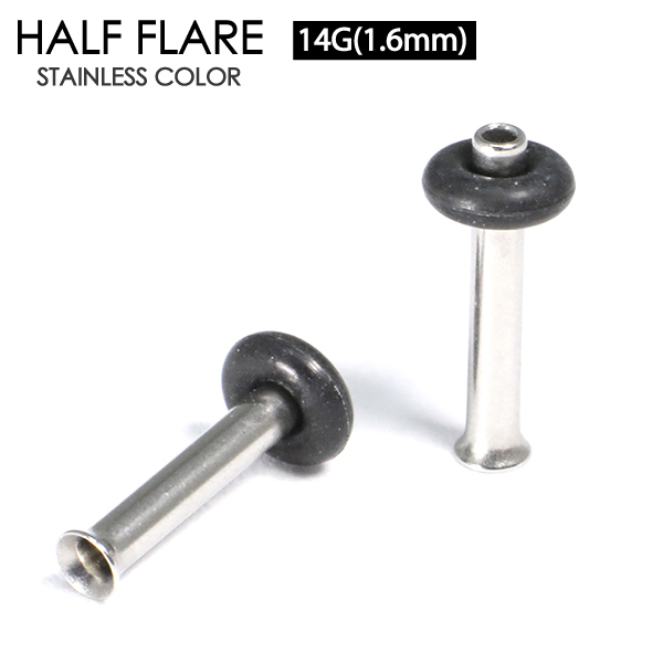 【メール便対応】シングルフレア ハーフフレア 14G(1.6mm) ボディピアス サージカルステンレス316L アイレット 定番ボディーピアス ホールトゥピアス 14ゲージ(1.6ミリ)┃