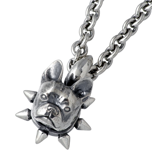 表情やディテールに凝ったブルドックのシルバーネックレス。