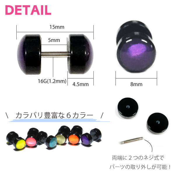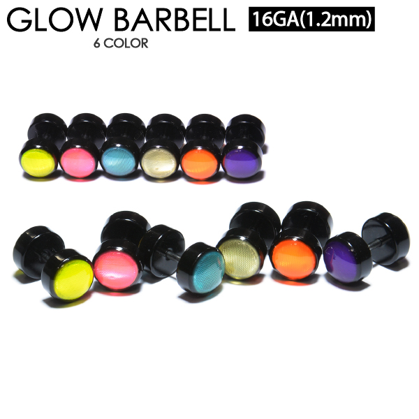 【メール便対応】GLOW バーベル 16G(1.2mm) 両側が蛍光色 ボディピアス グロー インパクト アクリル カラー 定番ピアス ショートバーベル ボディーピアス 軟骨ピアス┃