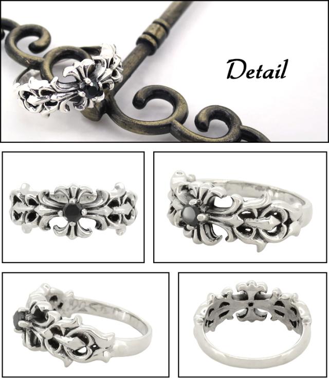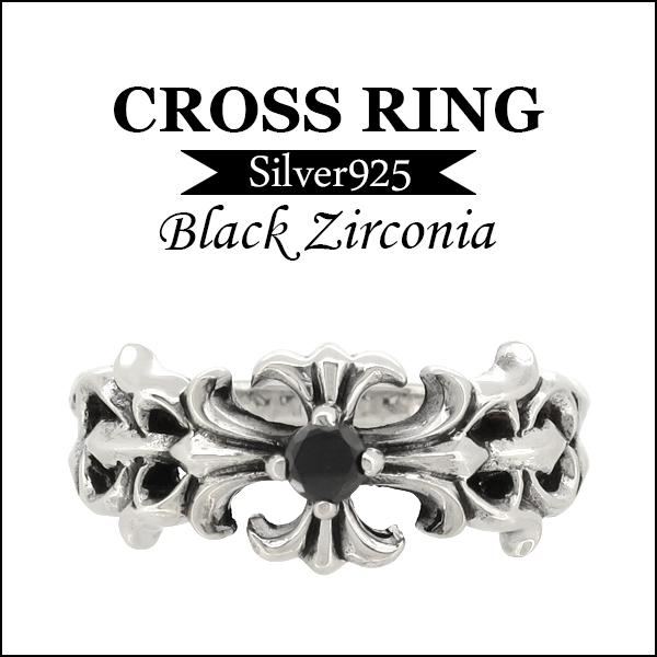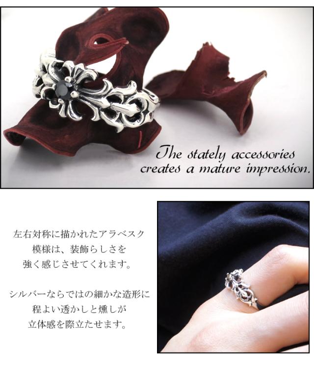 ブラックジルコニアホーリークロス&アラベスク 唐草シルバーリング 9〜23号 シルバー925 シルバーリング メンズ シルバー 指輪 大きいサイズ