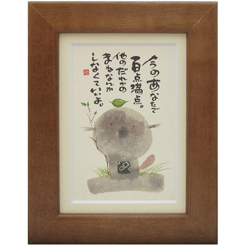 取寄せ品 御木幽石 今のあなたで百点満点 ブラウン ポストカード額装 フレーム付きPC メッセージアート