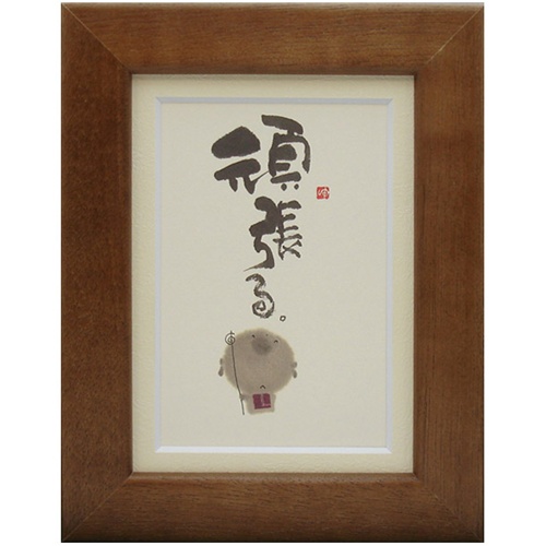 取寄せ品 御木幽石 頑張る ブラウン ポストカード額装 フレーム付きPC メッセージアート