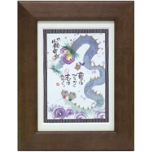 取寄せ品 御木幽石 夢はでっかく志はたかく ブラウン ポストカード額装 フレーム付きPC メッセージアート