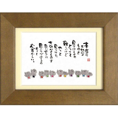 取寄せ品 御木幽石 本当の大切なもの ブラウン ポストカード額装 フレーム付きPC メッセージアート